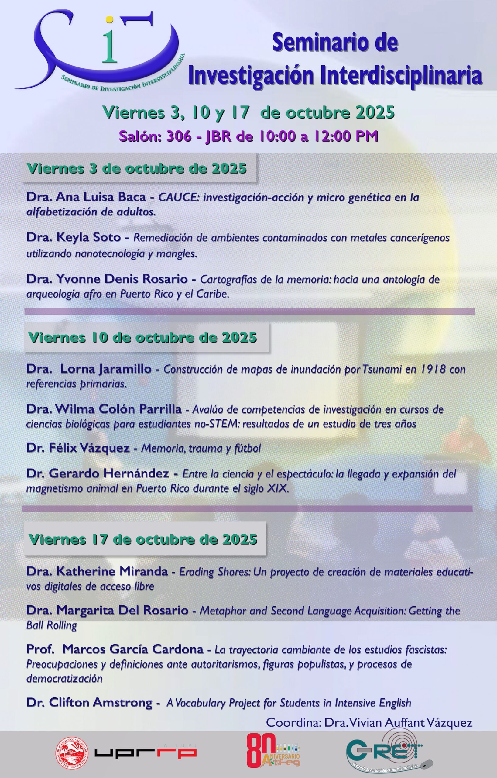 Descripción: Seminario en que los docentes presentan sus proyectos académicos. Este seminario lo coordina la Dra. Vivian Auffant Vázquez